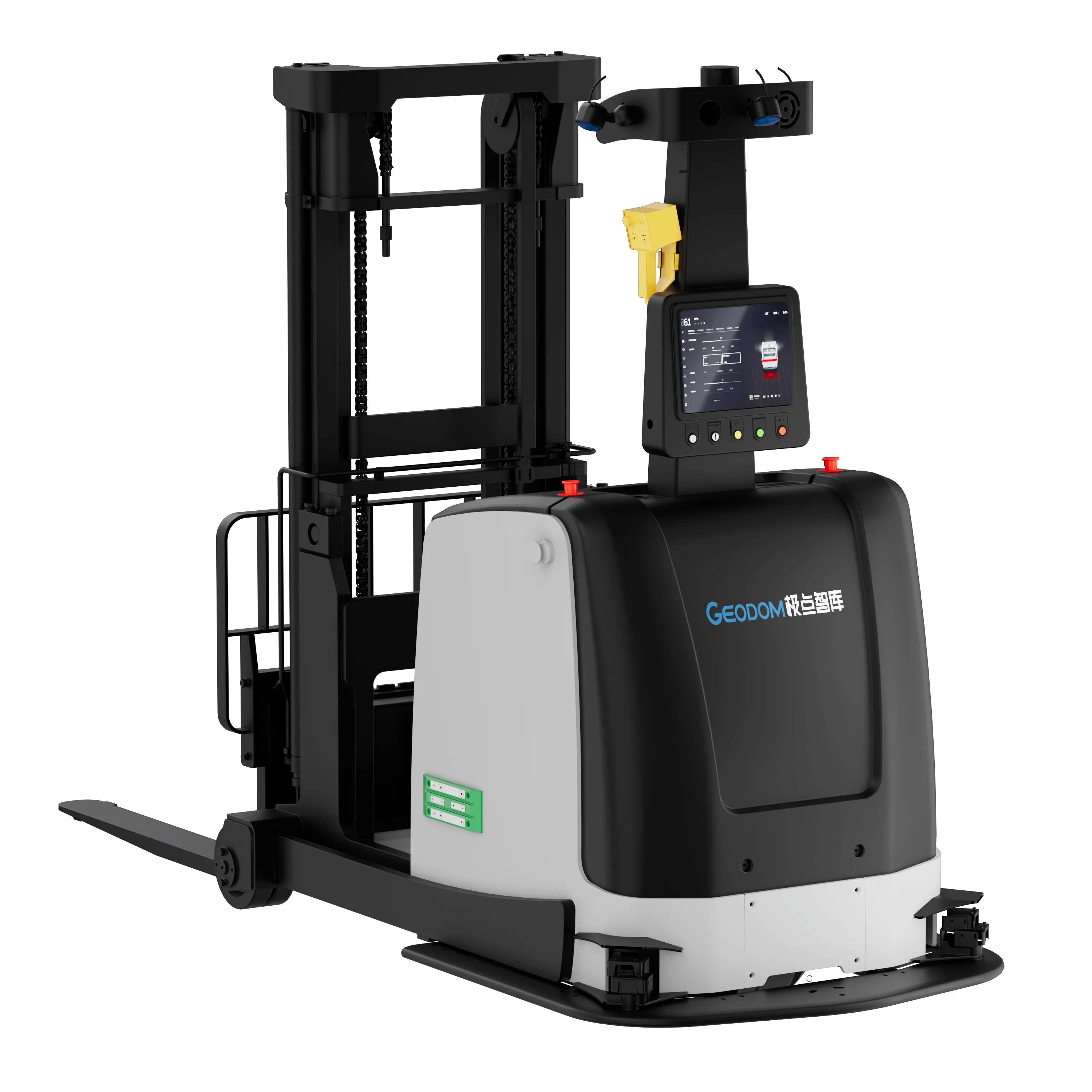 Multiple safety protections: laser collision avoidance, load detection, emergency stop button, audible alarm, etc.